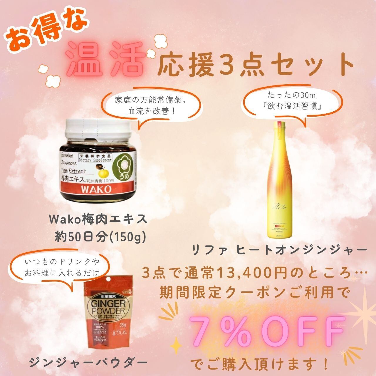 温活セット:梅エキス300g、リファ ヒートオンジンジャー480ml、高知県産しょうがパウダー20g